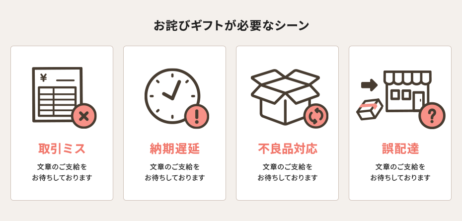 大切なお取引先に誠意の伝わる「お詫びの品」を選ぶことは、信頼関係を築く上で欠かせない配慮です。