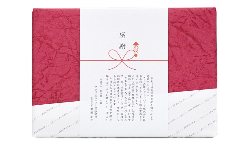 ただお祝いのお品を贈る以上に、「いつもお世話になっております。これからもよろしくお願いいたします。」といった、より一層感謝の気持ちを伝えたいというお客様の声から生まれた、okurimonoオリジナルサービスです。