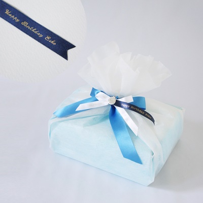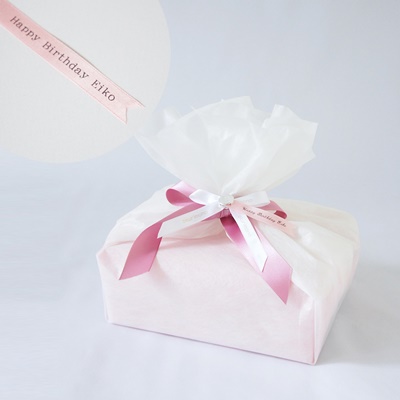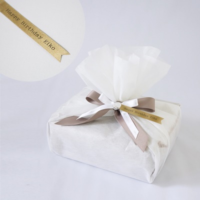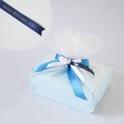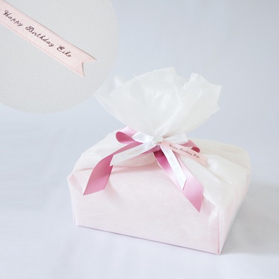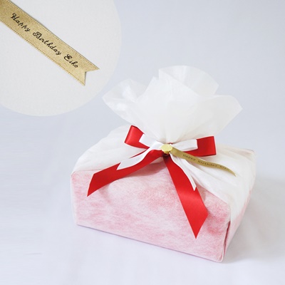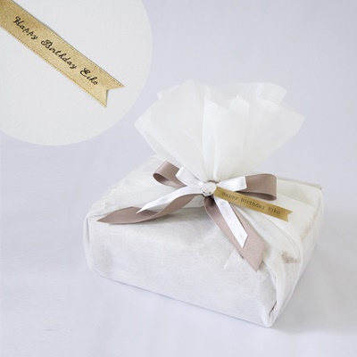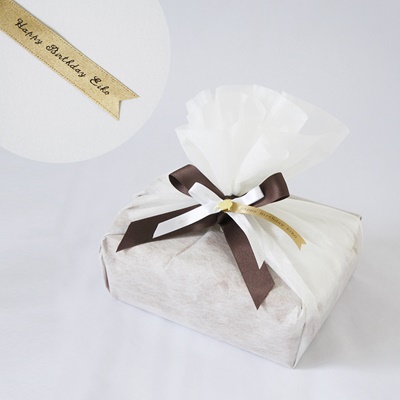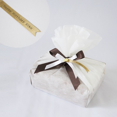 ラッピングのリボンの中に、お名前をプリントした特別な名入れリボン加工を施します。リボンは様々な年代・性別の方の好みに合うようなカラー展開を取り揃えております。